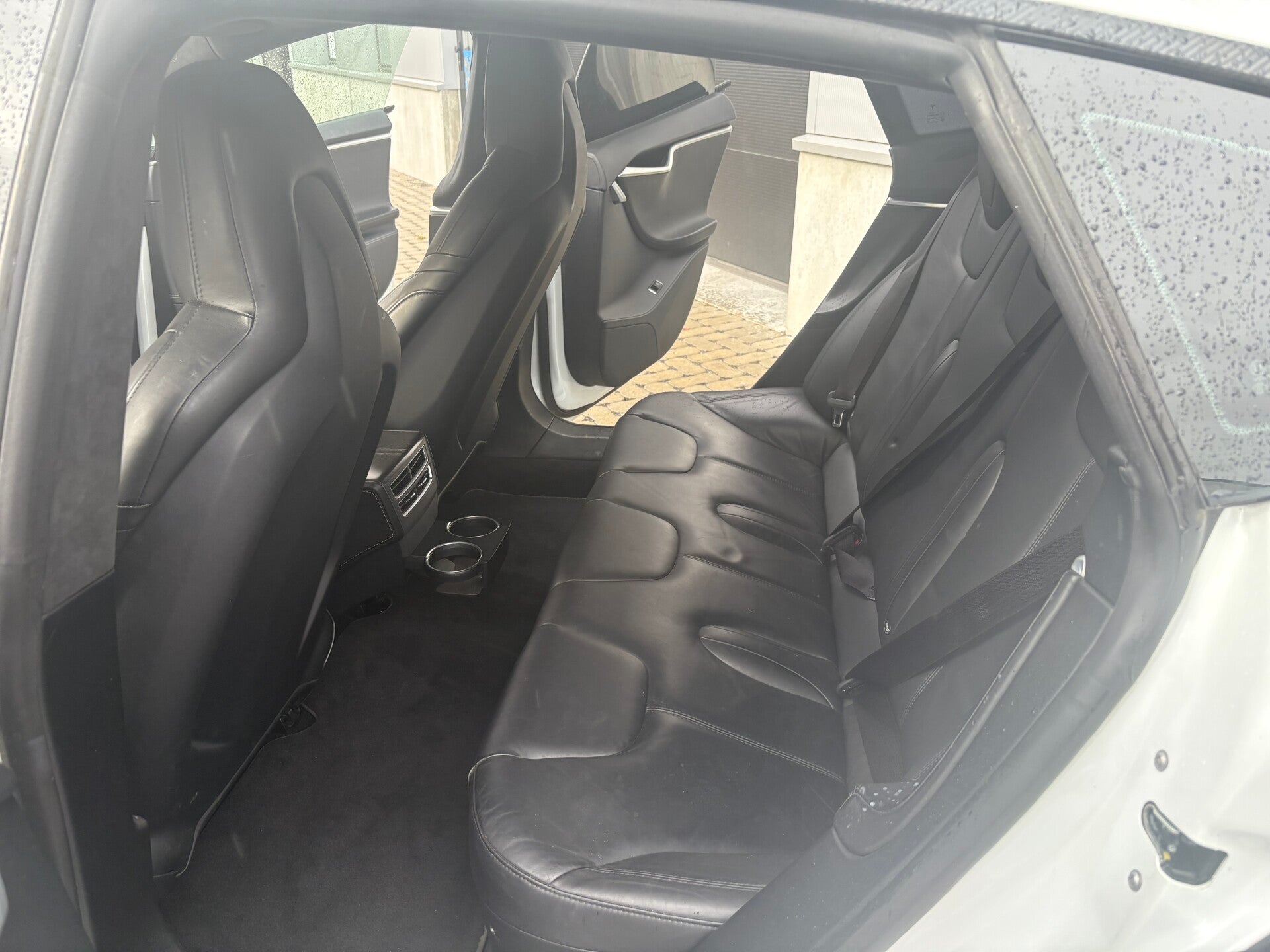 Deze Tesla Model S uit 2016 is niet alleen een luxe elektrische wagen met luchtvering voor maximaal rijcomfort, maar is ook super sportief met zijn 700pk , carbon spoiler , dikke rode remklauwen en kuipstoelen voor en achter !
